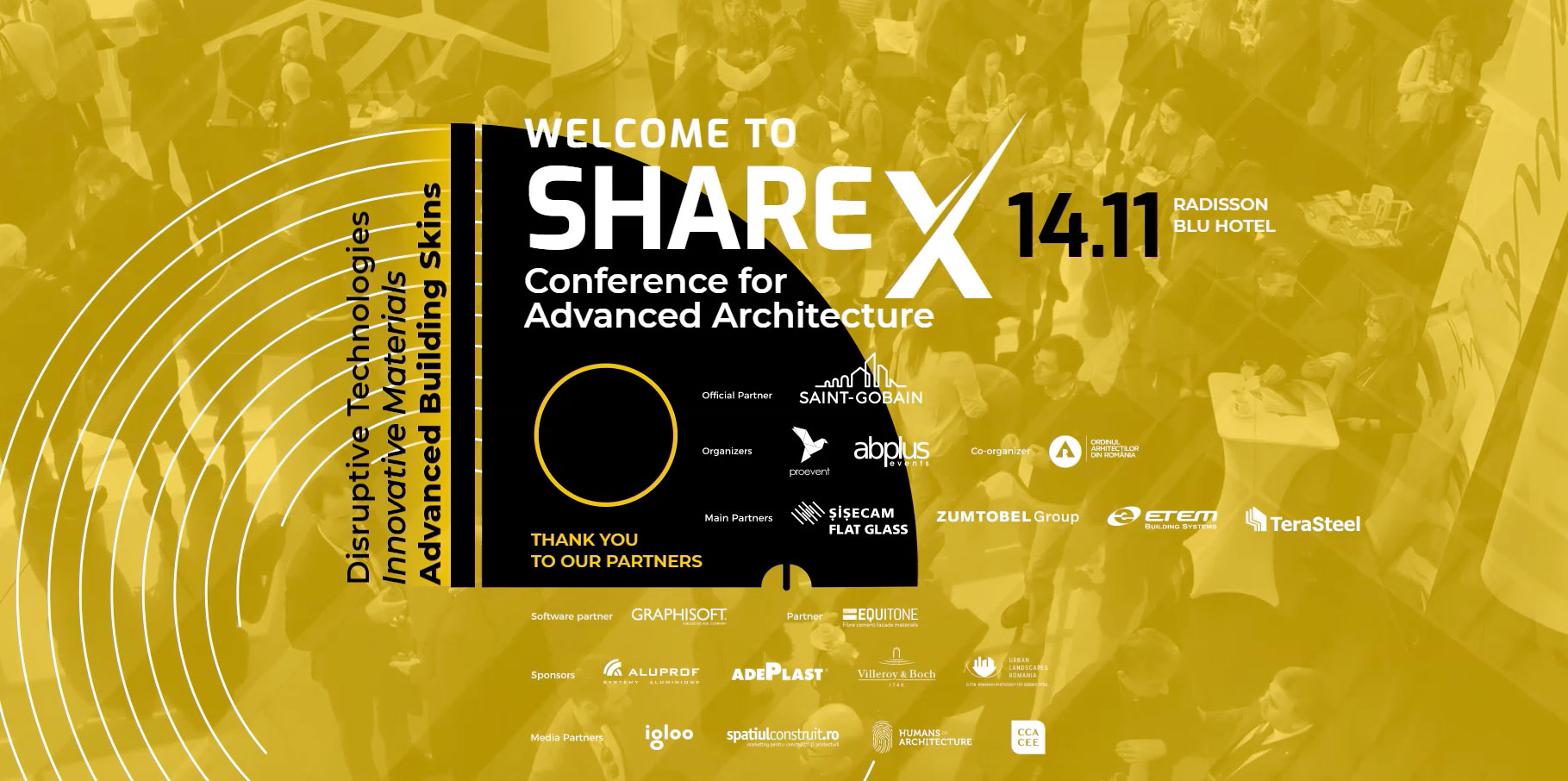 SHARE X, o ediție specială, a forumului SHARE, dedicată materialelor și tehnologiilor care prin caracterul rol transformator, revoluționează industria arhitecturii și construcțiilor. SHARE X, “Conference for Advanced Architecture”, va avea loc la București pe data de 14 noiembrie și va fi găzduită de Radisson Blu Hotel.