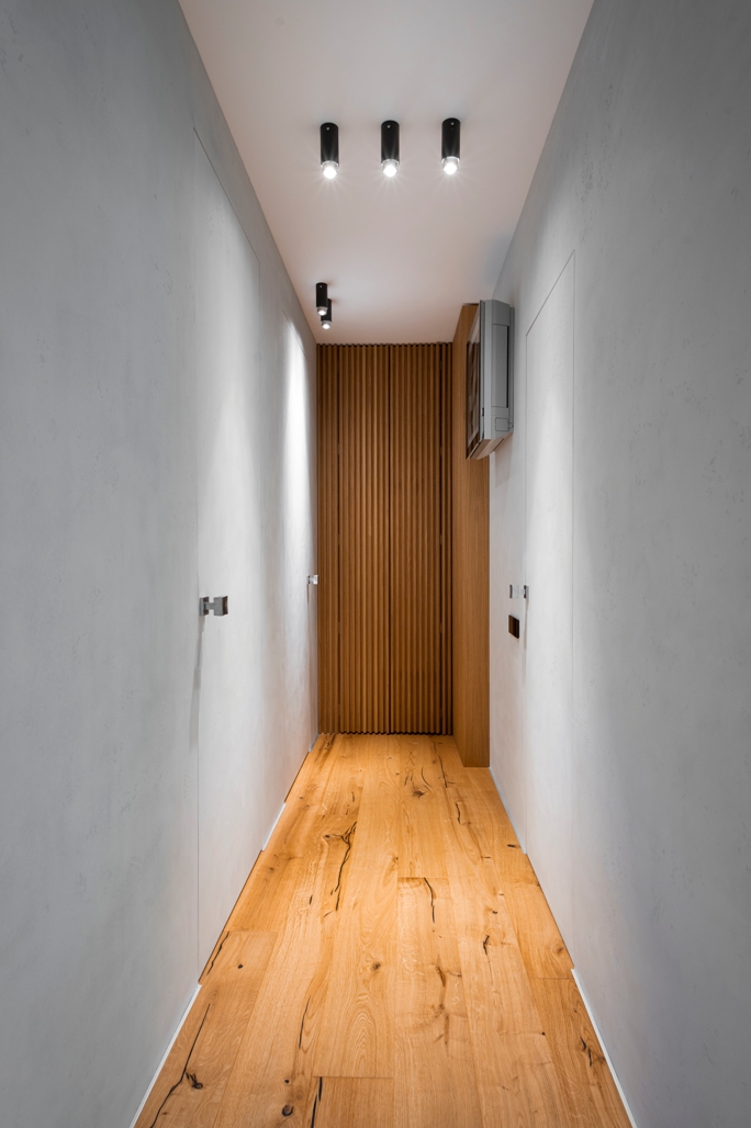Situat în cadrul unui nou ansamblu rezidenţial din Capitală, acest apartament cu patru camere a fost modificat şi optimizat pentru a se potrivi stilului de viaţă al proprietarilor. Amenajarea este dominată de lemn în tonuri calde, plasat într-un plăcut contrast cu detaliile în nuanţe de
