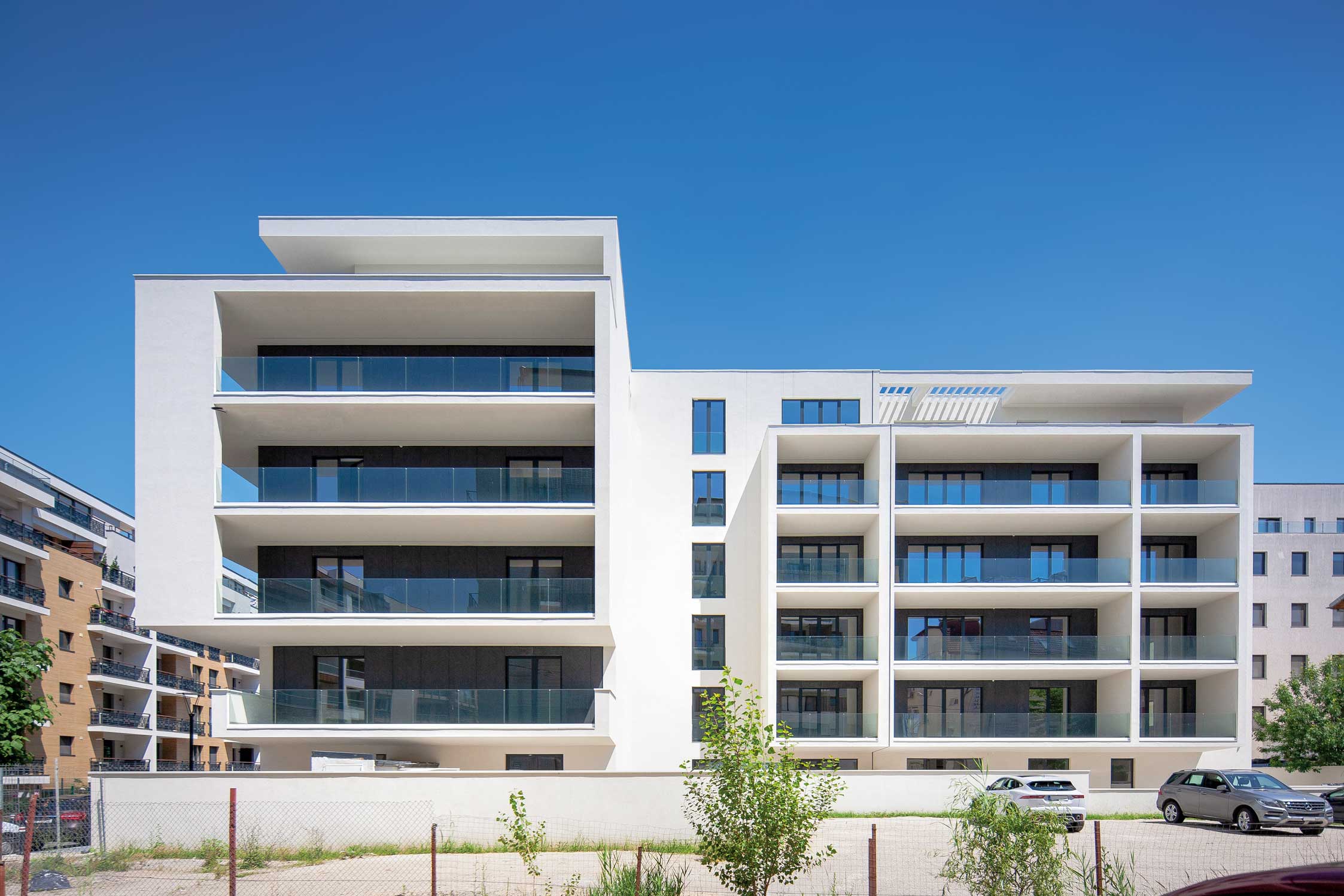 În cadrul acestui imobil de locuinţe, spațiile comune atipice, accentele de culoare și reluarea tehnicilor de finisare interbelice creează legături firești între clădire, locuitori și comunitatea din zonă. Două scări balansate iluminate natural demontează imaginea convențională a blocului cu coridor interior, cu intenția de a reduce