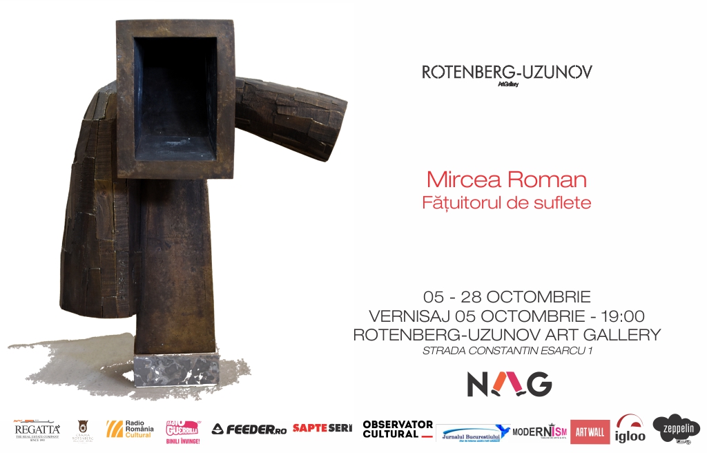 5-29 octombrie 2018 Eveniment Noaptea Albă a Galeriilor #12 Sunteți invitați vineri, 5 octombrie, începând cu ora 19:00, la vernisajul expoziției MIRCEA ROMAN – FĂȚUITORUL DE SUFLETE. Evenimentul va avea loc la Rotenberg-Uzunov Art Gallery, str. Constantin Esarcu nr. 1, și face parte din programul NAG #12. Expoziția se poate