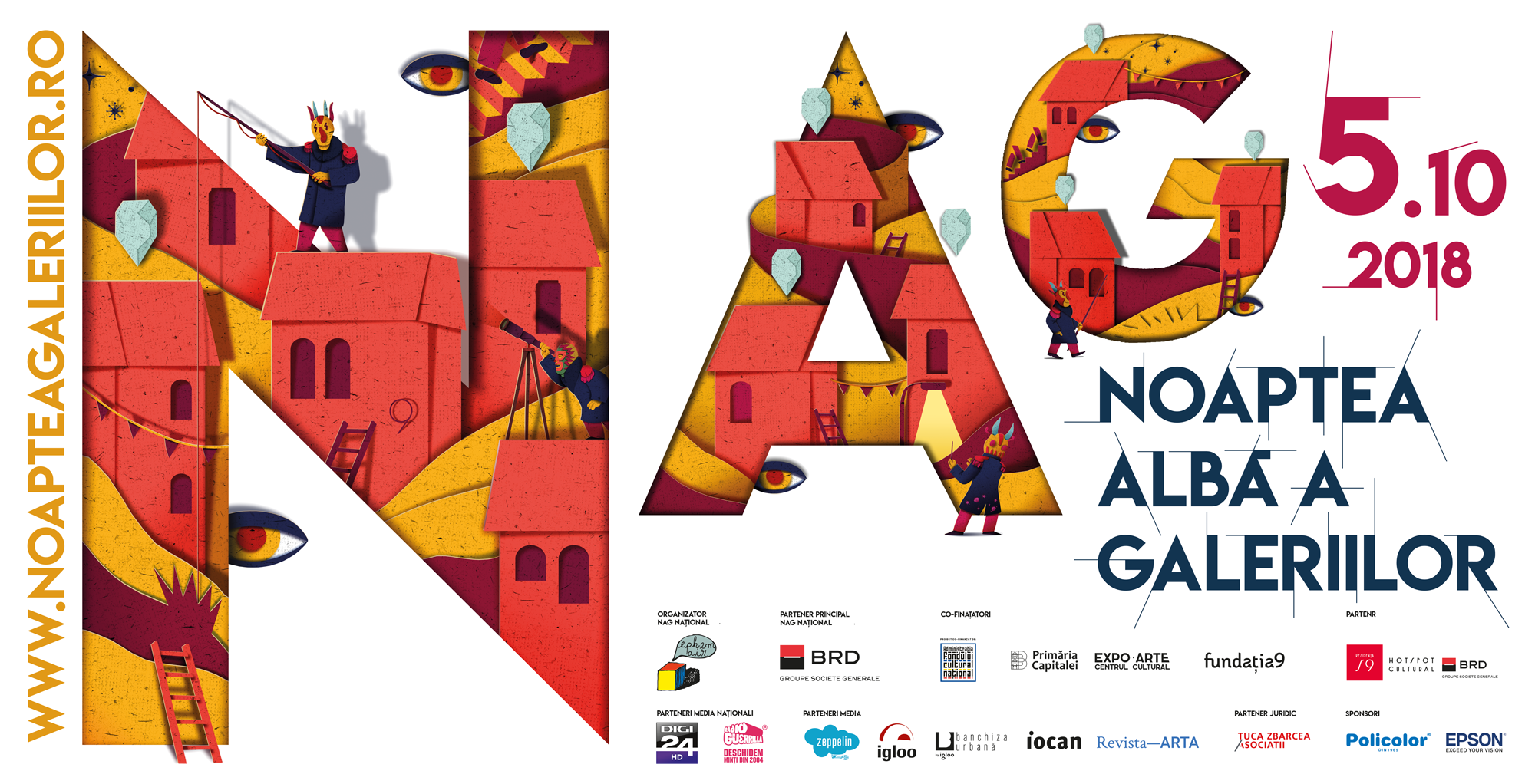 Pe 13 noiembrie, de la ora 13:00, ediția NAG#15 București poate fi vizionată exclusiv online pe www.noapteagaleriilor.ro și pe pagina de Facebook a evenimentului. Publicul va găsi acolo în premieră o variantă online cu caracter documentar a Nopții Albe a Galeriilor, un rezumat al expozițiilor