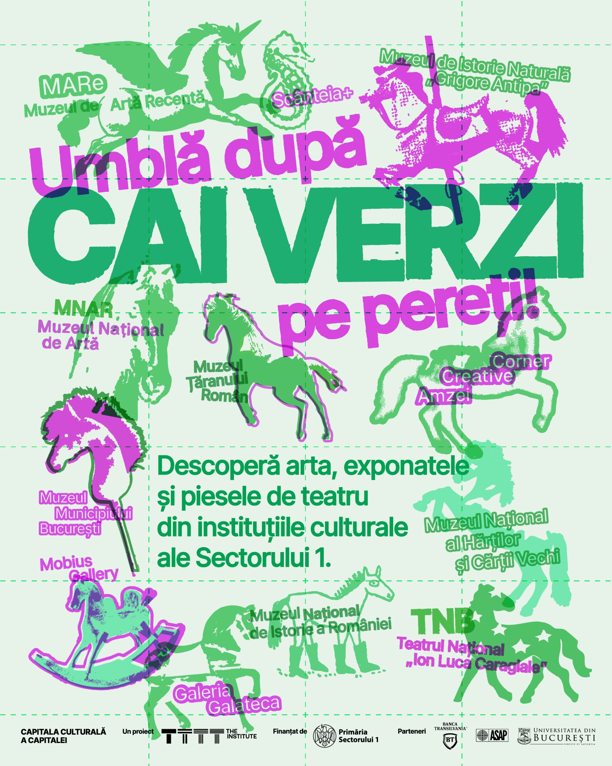 Sectorul 1 este zona cu cea mai mare densitate de instituții culturale din București – de la Muzeul Național de Artă al României la Muzeul Antipa, Muzeul Țăranului Român, MARe – Muzeul de Artă Recentă, Muzeul Hărților, Teatrul Național „I.L. Caragiale”, până la spații independente precum Scânteia+ sau Amzei Creative Corner, Galateca sau Mobius Gallery. În același sector învață, zilnic, mii de elevi și studenți din instituții precum Liceul Tonitza, Colegiul Național „Ion Neculce”, Liceul Teoretic Bilingv „Miguel de Cervantes” sau Liceul „Dimitrie Paciurea” , însă doar o mică parte dintre acești tineri ajung în mod constant în instituțiile culturale din proximitatea lor. Proiectul Cai Verzi – Capitala Culturală a Capitalei pornește exact de la acest decalaj: o concentrare culturală excepțională, dar insuficient convertită în experiențe pentru tineri.