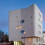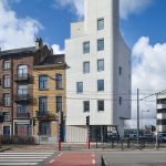 Located in the north of Brussels, at the entrance to the city, overlooking the Van Praet Bridge, the Navez building contains five social housing units for large families, and the building is energetically passive. The construction is relatively small in size, with five levels offset in the central area, but the intensity and pertinence of the approach are surprising.