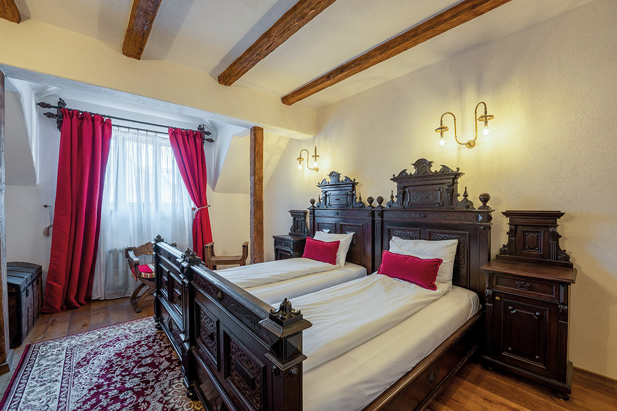 Hotelul își întâmpină vizitatorii cu povești de altădată transpuse expresiv în fiecare spațiu și obiect decorativ: o pivniță de vinuri în stil medieval, elemente de arhitectură gotică, cu arce de piatră și tavanul cu frescă de-acum patru secole, sau un ceas bisericesc cu clopot, vechi de peste 100 de ani – sunt doar câteva dintre amprentele de pitoresc prezente în spațiu.