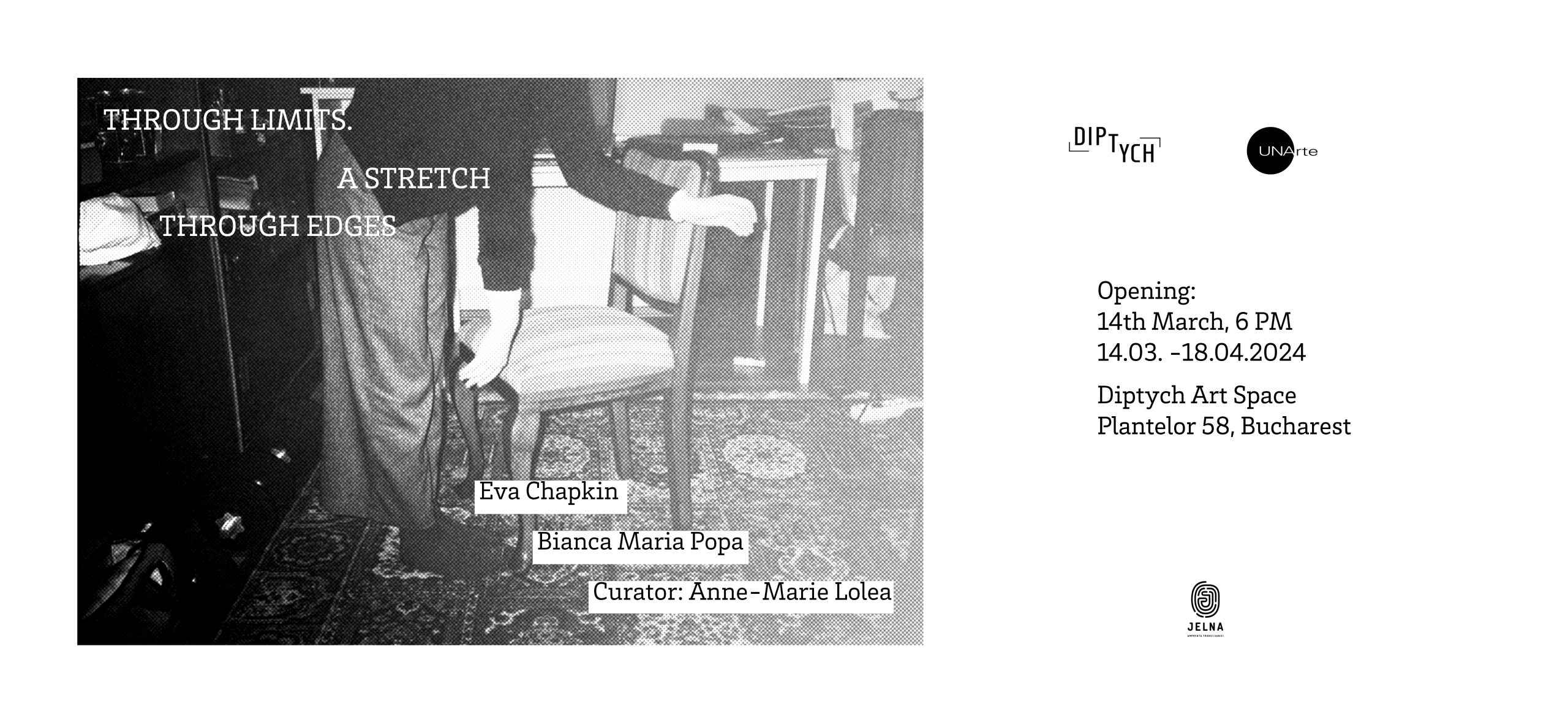 Diptych Art Space găzduiește în perioada 14 martie – 18 aprilie 2024 duo show-ul „Through Limits. A Stretch Through Edges” semnat de Eva Chapkin și Bianca-Maria Popa, curatoriat de Anne-Marie Lolea. Evenimentul care marchează deschiderea expoziției va avea loc în data de 14 martie, de la ora 18, pe strada Plantelor 58.