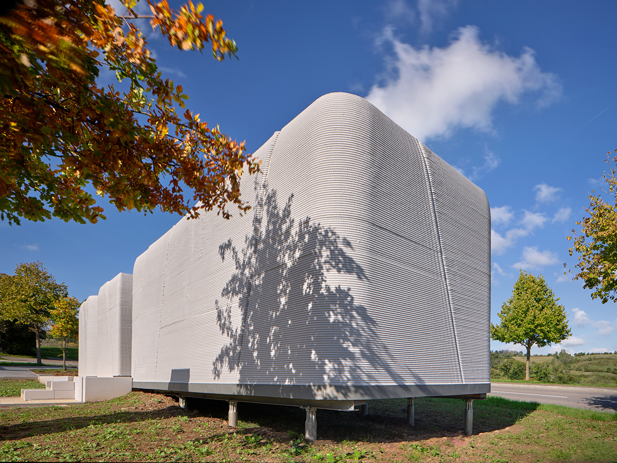 PROIECT: Tiny House LUX; AMPLASAMENT: Niederanven, Luxemburg; SUPRAFAȚA TERENULUI: 600 mp; SUPRAFAȚA CONSTRUITĂ DESFĂȘURATĂ: 64 mp; SUPRAFAȚA UTILĂ: 47 mp; ARHITECTURĂ: ODA Architects – Bujar Hasani (autor, șef proiect), Coral Architects – Michal Mačuda (conversie pentru imprimare 3D și pregătirea datelor), Kristýna Uhrová (pregătire machetă și date în vederea imprimării); COLABORATORI: Staikos 3D (Georgios Staikos) – constructor, Coral Construction Technologies – imprimare 3D beton); CLIENT: Primăria din Niederanven; FINALIZAT: 2025