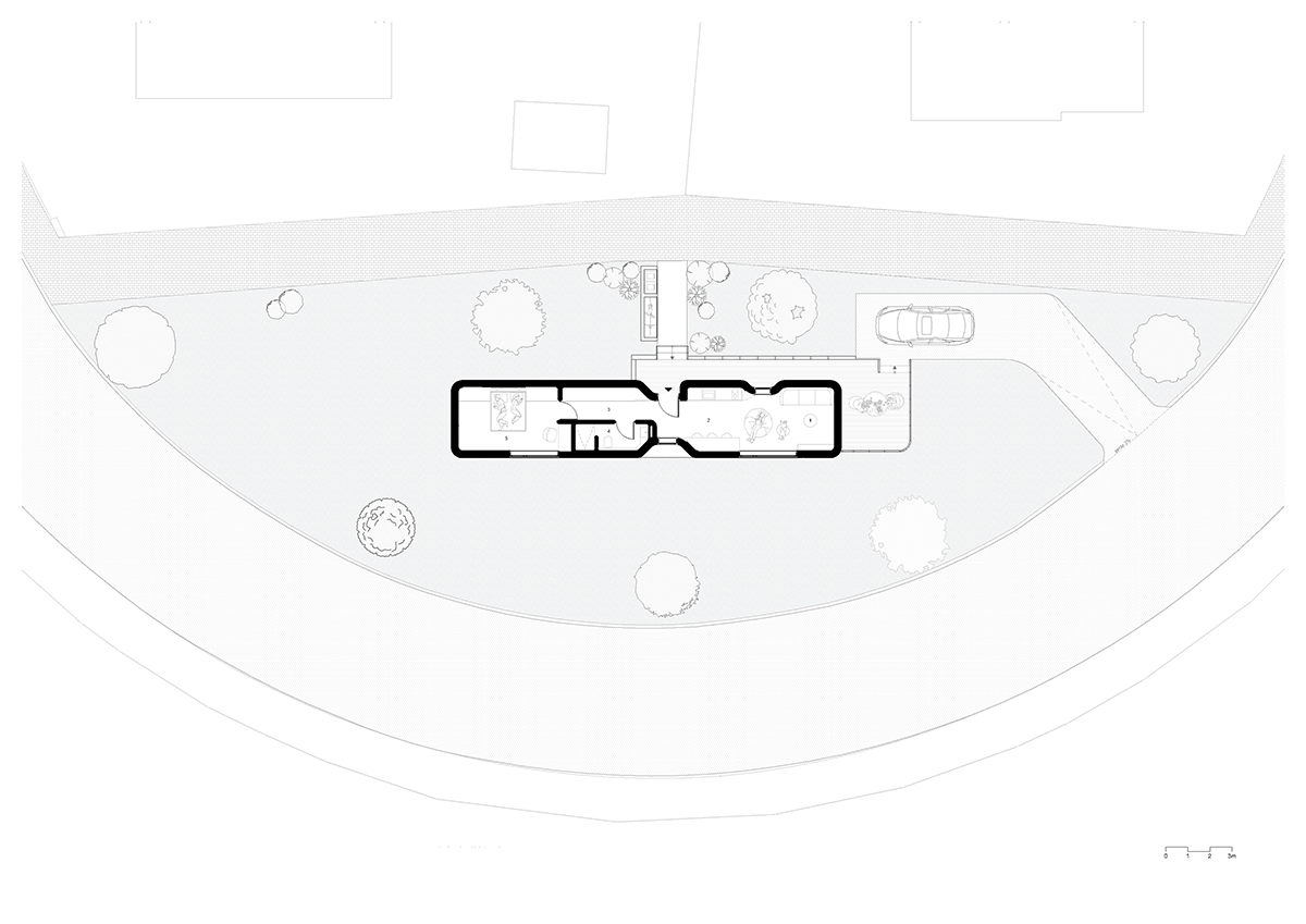 Prototipul rezultat se situează pe un teren lung și îngust (17,7 m x 3,5 m), la marginea unei zone rezidențiale din comuna Niederanven. Planul răspunde acestei limitări printr-o axă centrală puternică, care menține perspectiva principală deschisă, casa fiind percepută ca fiind mai amplă decât suprafața sa utilă de numai 47 m. Diferitele funcțiuni și depozitările sunt dispuse pe ambele părți ale axei centrale.
