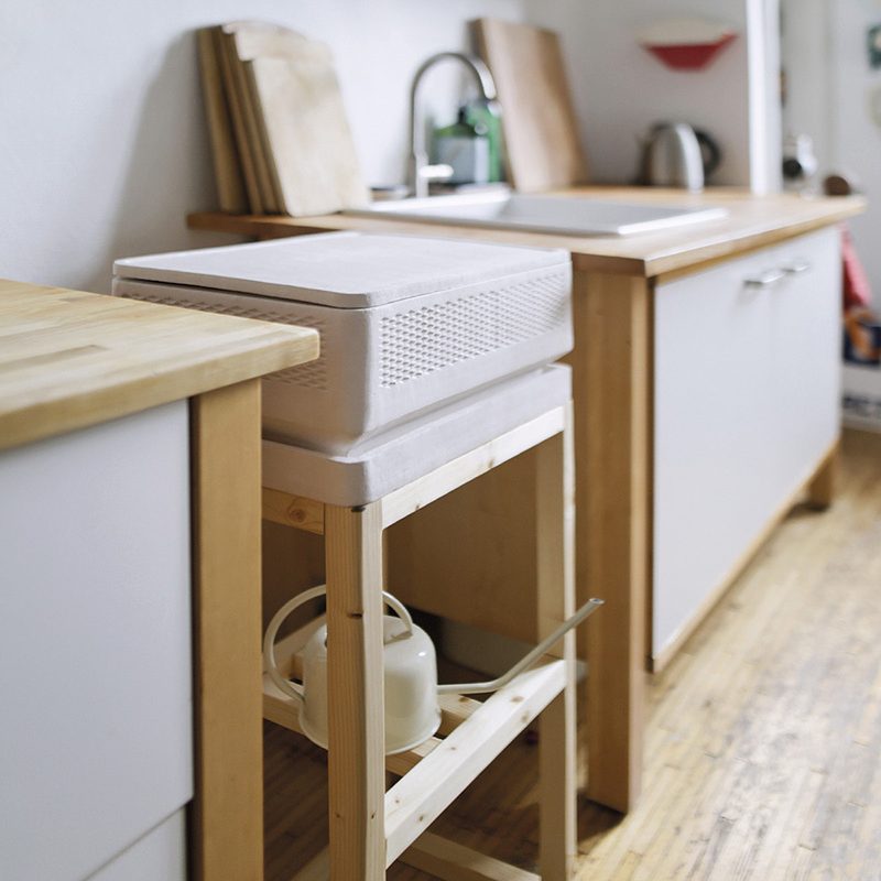 Avem ocazia să explorăm veleitățile ludice ale designului industrial grație proiectului Tony semnat de designerul Lea Lorenz. Practic și util, Tony își va găsi loc în orice bucătărie, fiind un recipient bazat pe procesul răcirii prin evaporare, păstrând fresh alimente care nu trebuie conservate în frigider, ca de exemplu fructele și legumele. Realizat din argilă Raku, provenită din regiunea Westerwald din Germania, Tony propune un sistem de recipiente care se pot suprapune pentru a conserva separate fructele și legumele sensibile, care își pierd savoarea dacă sunt păstrate la temperaturi mult prea scăzute. Fiecare recipient din lut are propria tavă de apă și un capac, asigurând astfel o funcționare independentă. De asemenea, cooler-ele au dimensiuni diferite vizând și ergonomia spațiului în care vor fi așezate. Temperatura din interior se menține între 13 și 17 grade, ceea ce asigură o conservare adecvată a legumelor și fructelor, având consecințe benefice și asupra consumului responsabil.
