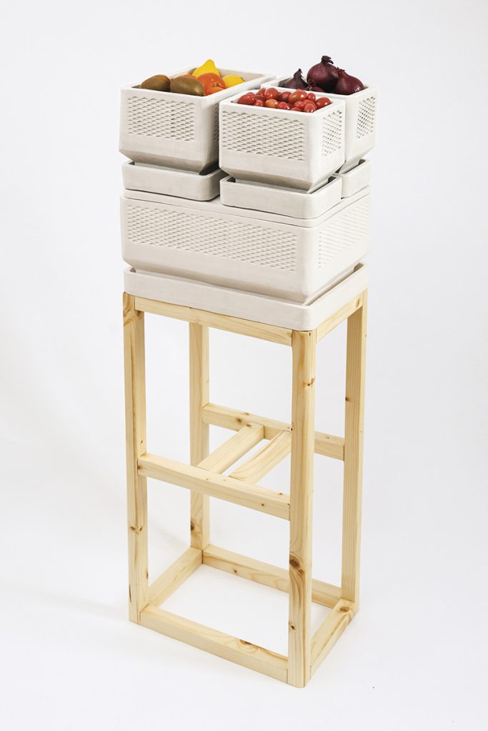 Pentru toți cei care au avut vreodată dilema păstrării sau nu a legumelor și fructelor în frigider, deoarece în bucătărie era prea cald, răspunsul este Tony, un sistem de recipiente de răcire pe bază de evaporare a apei conceput de către designerul Lea Lorenz. Argila stă la baza recipientelor înscriindu-se într-un demers sustenabil și invitându-ne la consum conștient și responsabil.