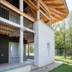 Ahitectura şi modul de construire apropiat de un timp fără timp permit umbrelor binefăcătoare, spaţiilor deodată de afară şi de dinăuntru să amprenteze aproape arhetipal, vernacular, locurile casei. Învelitoarea de şindrilă pe acoperişul cu şarpantă în patru ape, streaşina largă cu colț rotunjit, ritmată de căpriori prinşi prelung de grinzi în cleşti şi stâlpii pătraţi sunt, toate, elemente din lemn care au la bază colţuri zidite din lut, ridicat pe structură de lemn. O vopsea albă unifică lemnul şi lutul în ton luminos.
