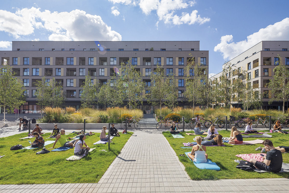 Grădinile, gândite atât pentru rezidenții complexului Fuzja, cât și pentru locuitorii orașului, sunt o veritabilă oază verde de liniște, departe de traficul rutier (mașinile beneficiază de parcare subterană) și înconjurată de edificii istorice. Mai mult, pentru a completa zona verde de umbră, alți aproape 50 de copaci vor fi plantați de către dezvoltator în viitorul apropiat.