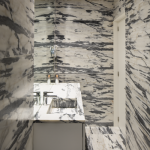 In response, a set of rules were defined to transform the original motif of the panels into an abstract pattern, embodied into a flat-tile base, a bas-relief-tile body, and a perforated-steel, light-permeable, entablature.