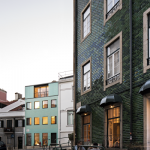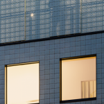 “The motif of the original tile, explain the architects, was translated with a set of abstract rules in a skin that is materialized in different media: a tile with a bass-relief and a patina copper filigree, permeable to light, which tops the solid part of the building. We chose for patina copper because its light, vivid green matches the dominant color in the existing tiles. At ground level, the façade is clad in plain tiles that look more solid than the former and are reminiscent of the traditional cladding in solid stone at ground level, as happens in nearby buildings.”