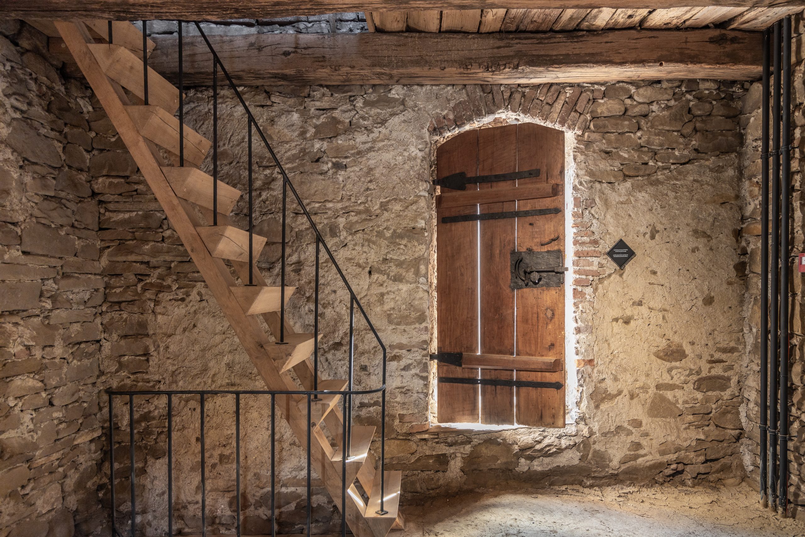 Lucrările de restaurare au readus parterul la nivelul inițial de călcare și au refăcut planșeele prăbușite. Grinzile, de la care s-au păstrat numai locașurile de încastrare în zid, au fost înlocuite cu câte doi dulapi, care vădesc intervenția contemporană. Scările dintre etaje, cărora li se cunoaște amplasarea, dar nu și forma, au căpătat și ele o fizionomie actuală. Balustradele minimaliste scot în evidență geometria frustă a treptelor de lemn, deplin adecvată arhitecturii defensive, simplă și lipsită de ornamente.