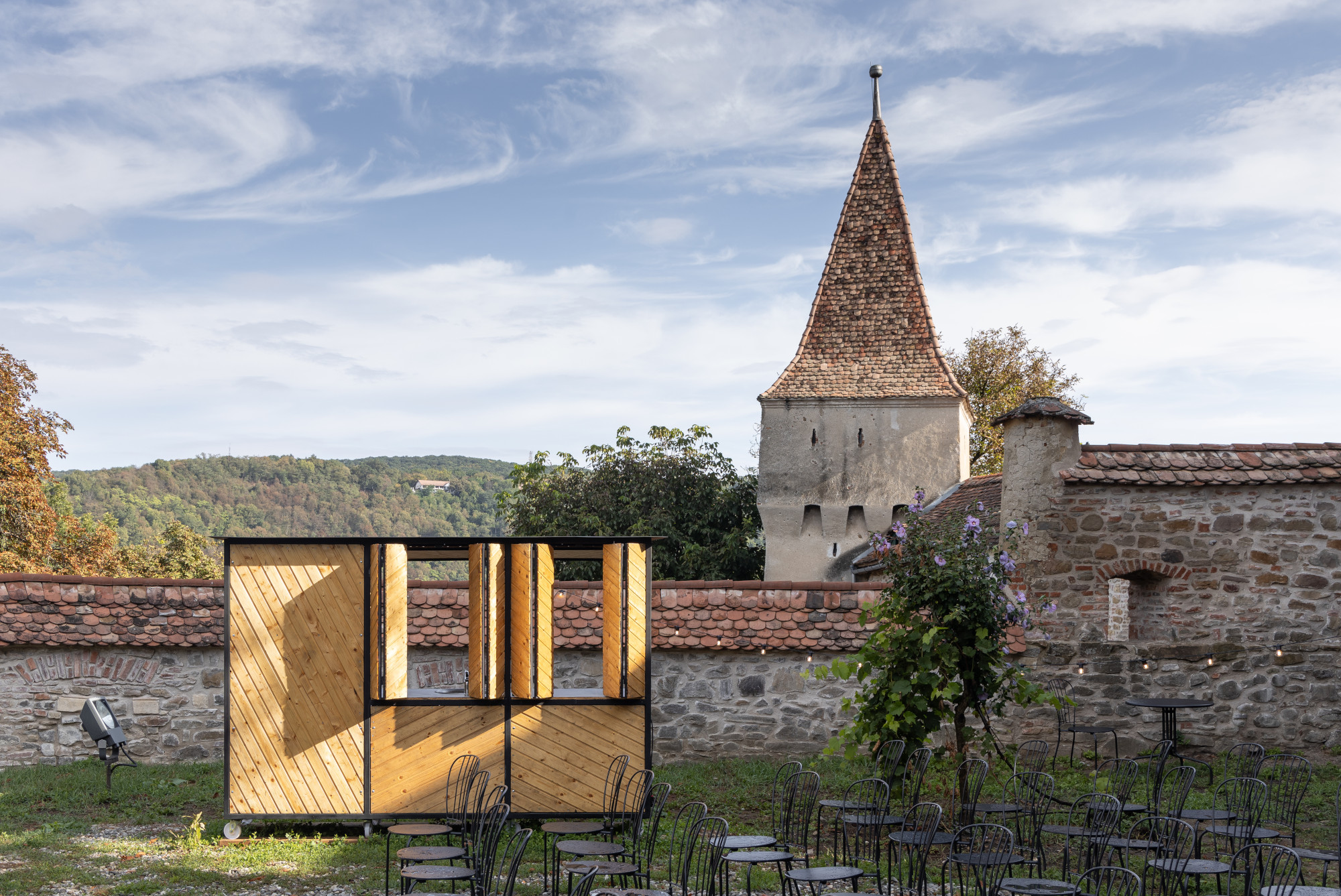 Această diferențiere netă dintre elementele autentice și cele noi este consecvent și reușit aplicată și altor inserții funcționale. Singura dicrepanță o face barul mobil, al cărui aspect, de cutie pe rotile încinsă la muchii cu corniere, nu se integrează în ambianța arhaică de ansamblu. Este o părere subiectivă, care nu știrbește cu nimic meritele celor care au relansat valoric un element semnificativ al vechiului burg ardelean.