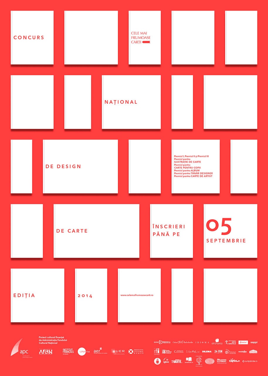 Regulamentul care descrie condițiile de participare și formularul de înscriere pentru Concursul național de design de carte, ediția a III-a pot fi accesate la http://celemaifrumoasecarti.ro