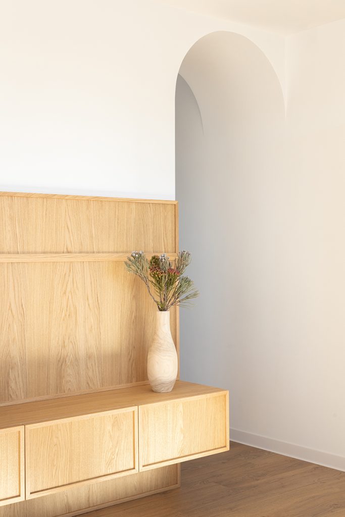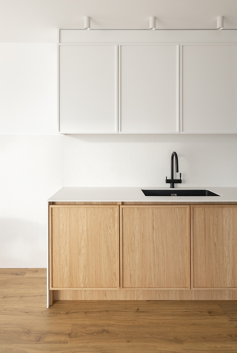Încă de la început, proiectul a fost gândit cu o mare considerație față de spațiul alb și gol inițial, ale cărui calități meritau să fie scoase la lumină. Așadar, acestea au fost evidențiate și valorificate prin forme și sensibilități inspirate de mai multe tipuri de interioare bucureștene, începând din perioada Art-Deco și până în prezent. Acestea au fost epurate – mai precis, păstrate ca formă și intenție, dar eliberate de conținut. În același timp, albul pereților, lemnul și nuanțele blânde au contribuit la crearea unui mediu domestic ce nu depinde de condiții exterioare pentru a fi confortabil și funcțional.