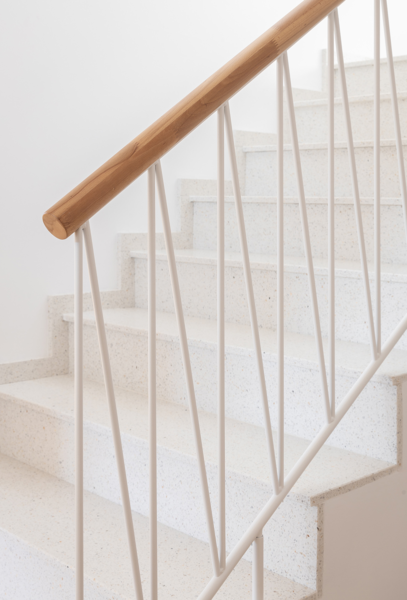 Prin elemente ca scara de mozaic cu balustradă albă sau spațiile lăsate libere pentru circulație, aer și lumină, puse în contrast cu textilele moi, interiorul crează o senzație de spațiu public în multe dintre zonele sale. Prin accentul pus pe durabilitate în alegerea materialelor, dar și prin opțiunea de păstra spațiile libere, aerisite, acordând prioritate activităților pe care acestea urmează să le găzduiască, proiectul devine întruchiparea unei abordări de design aproape critică față de concepția actuală asupra spațiului domestic.