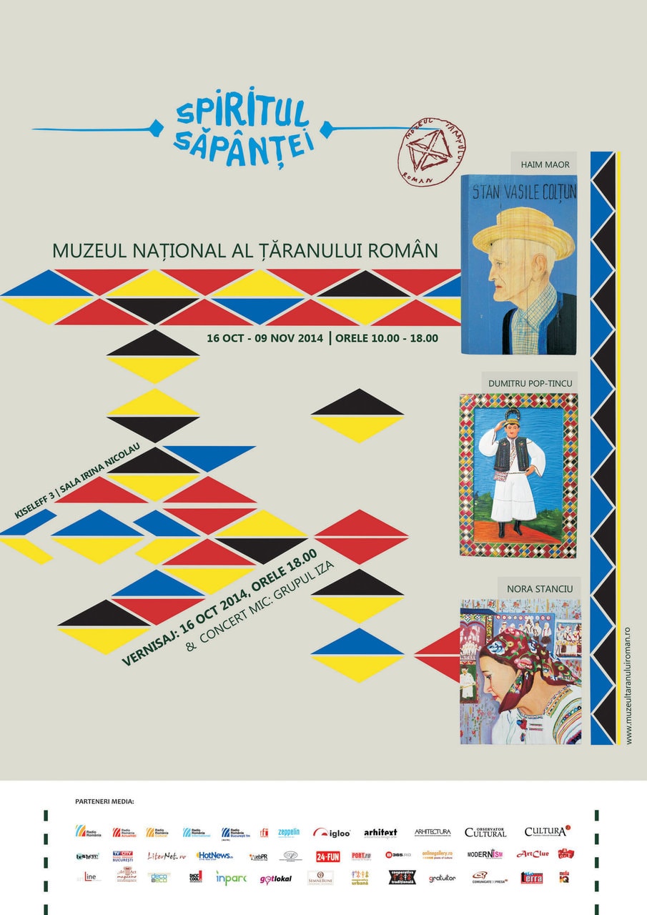 Muzeul Național al Țăranului Român vă invită în perioada 16 octombrie – 9 noiembrie 2014, să descoperiți, dincolo de Maramureșul fotografilor sau al documentarelor TV, care vorbesc despre imaginea idilică a unui spațiu tradițional autentic, chipurile-biografii ale unor oameni ai locului în care tradiția este permanent animată de scenografia prezentului. Expoziția Spiritul Săpânței, proiect intercultural inițiat de artiștii contemporani israelieni Haim Maor și Nora Stanciu, avându-l ca invitat și colaborator pe Dumitru Pop Tincu, sculptorul țăran al crucilor Cimitirului vesel din Săpânța, filtrează ca într-un jurnal vizual subiectiv, povești pictate, sculptate, cusute sau înregistrate, într-o formulă totodată postmodernă și melancolică, surprinzînd cu vitalitate și expresivitate un întreg imaginar al cotidianului țărănesc al locului.