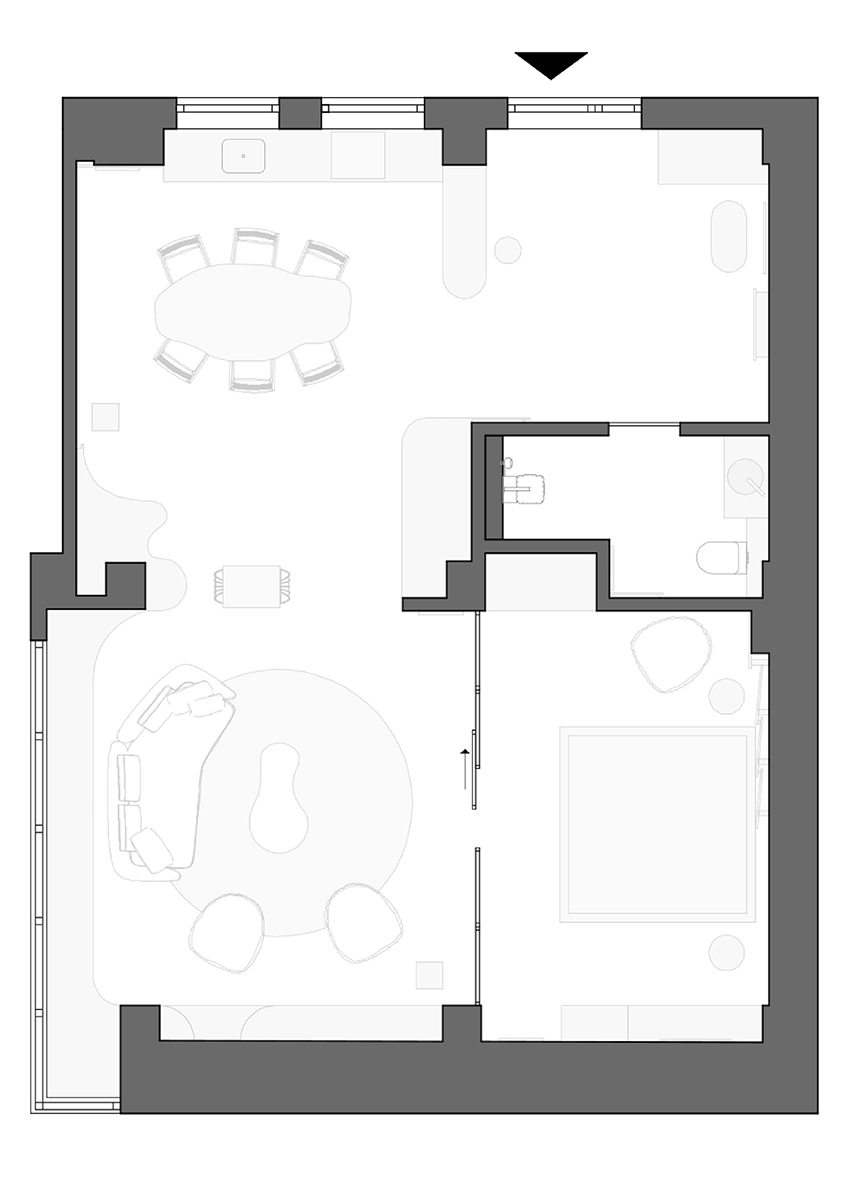 În amenajarea acestui apartament din centrul Clujului, servind drept reședință secundară, avantajul oferit de interiorul existent liber, tip open space, s-a dovedit și cea mai mare provocare, arhitecților revenindu-le misiunea de a defini un spațiu lipsit de repere, dar plin de potențial. Rezultatul este o locuință complet funcțională – un refugiu contemporan, eficient și însorit.