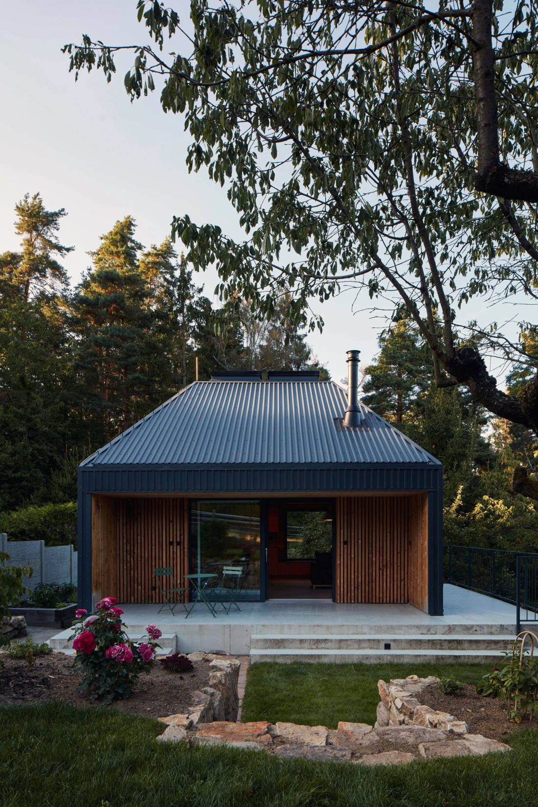PROIECT: Skylight Hut; AMPLASAMENT: zona râului Sázava, Republica Cehă; SUPRAFAȚA TERENULUI: 500 mp; SUPRAFAȚA CONSTRUITĂ: 46 mp; ARHITECTURĂ: Atelier Hajný; AUTOR: Martin Hajný; CO-AUTOR: Markéta Šornová; FINALIZAT: 2024