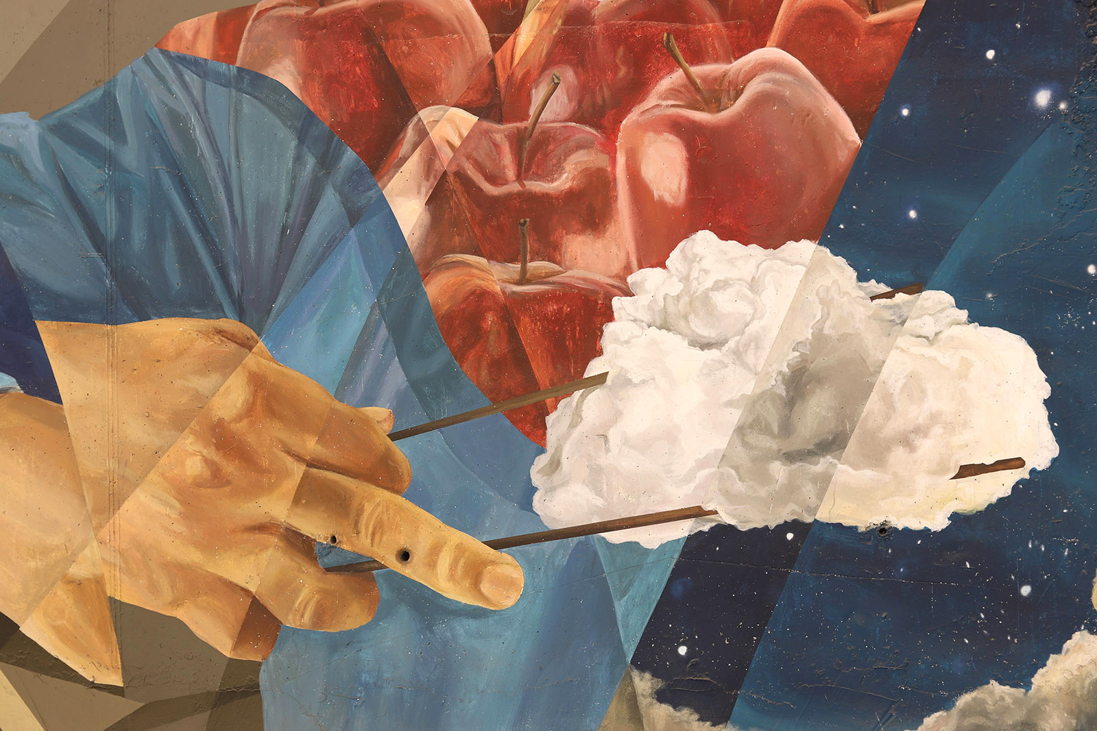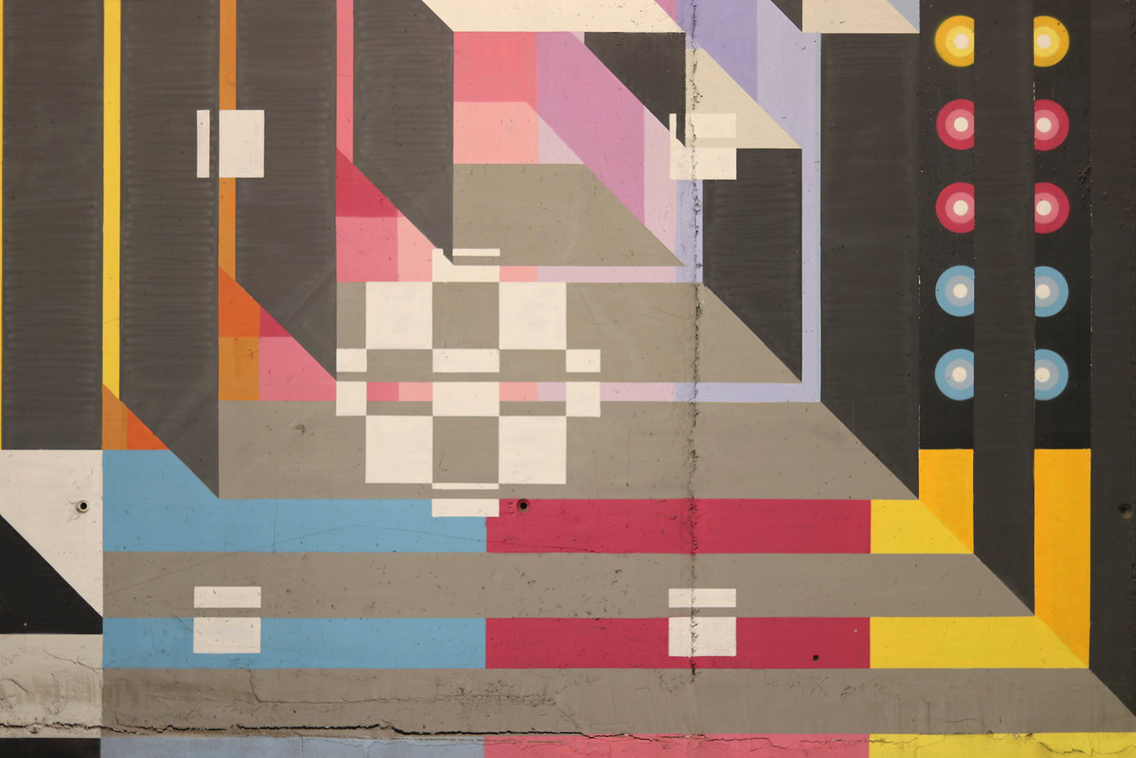 Să ne întoarcem în stradă, să privim orașul … Aruncăm privirea într-o oarecare direcție. Și WOW! primim o doză de culoare, o artă provocatoare. Dintr-odată suntem desprinși din lumea gândurilor noastre și ne trezim în fața unei interpretări a relației intime cu strada. Și totuși, strada, mai bine spus acel WOW ­ arta stradală, ne cere o contemplare mai profundă a înțelegerii și semnificației lucrării. Am să pun pauză acum, pentru a imortaliza câteva capturi cu adevărat surprinzătoare ­ close-up ­ acele integrări pure în imagine, ca un flux al conștiinței. Acest experiment conține mai multe provocări. Una dintre acestea este aventura privirii alături de artiști ce ne ghidează spre acele close-up-uri abstracte care nu pot fi citite decât dinlăuntrul lor, pentru că din exterior totul pare un joc al echilibrului, al cromaticii, al invadării spațiului public prin variațiuni de mărimi și forme digitale sau geometrizate.