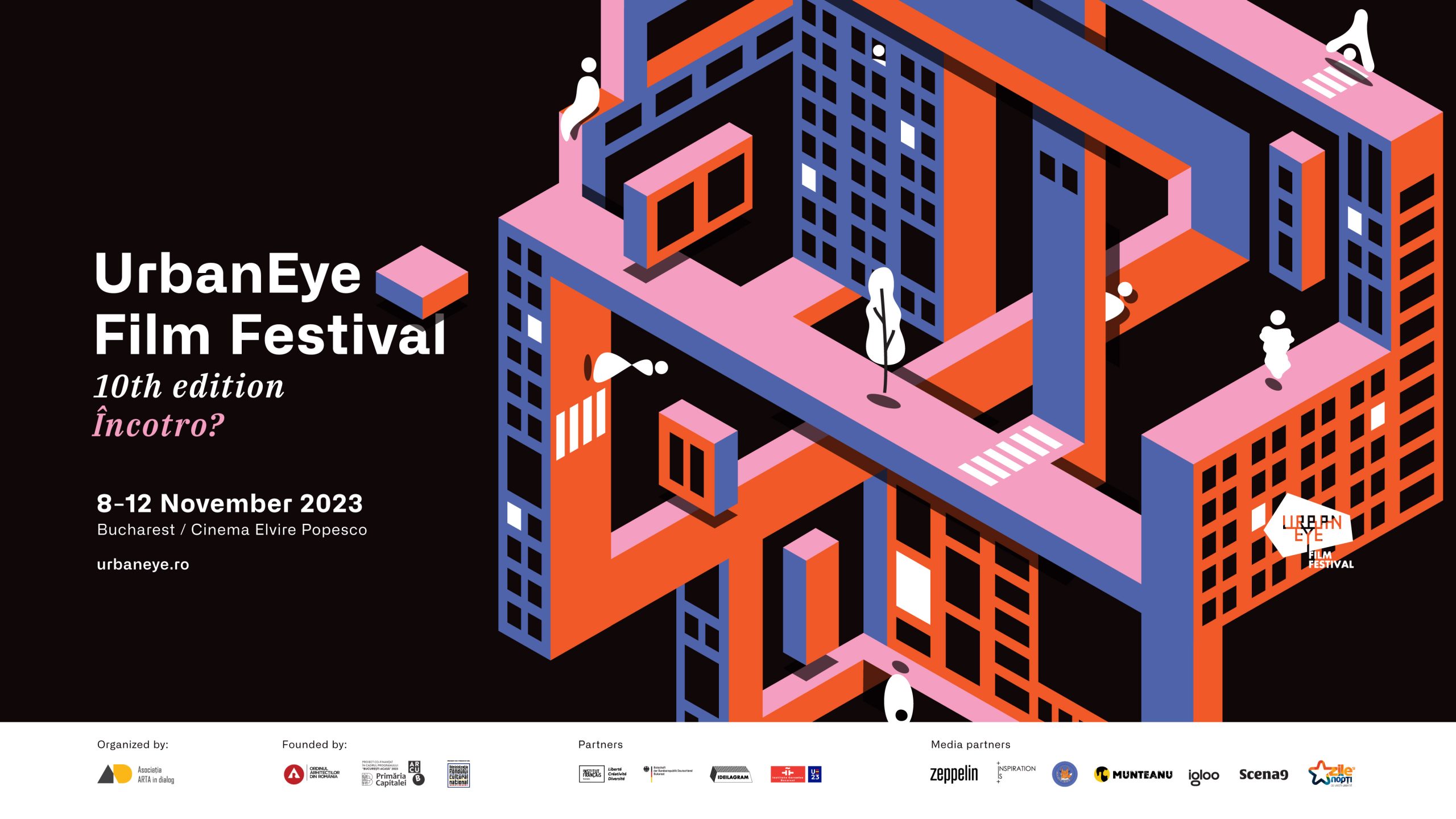 UrbanEye Film Festival sărbătorește ediția aniversară de 10 ani cu tema provocatoare „Încotro?” între 8-12 noiembrie, la Cinema Elvire Popesco. Acest moment aniversar reprezintă o ocazie de introspecție și de reflecție asupra viitorului. Privind înapoi la realizările și provocările noastre, ne uităm acum înainte curioși și cu speranță. La a zecea ediție, UrbanEye te invită să explorezi schimbările care au modelat orașele noastre, modul în care societatea se redefinește și marile provocări globale ale momentului.