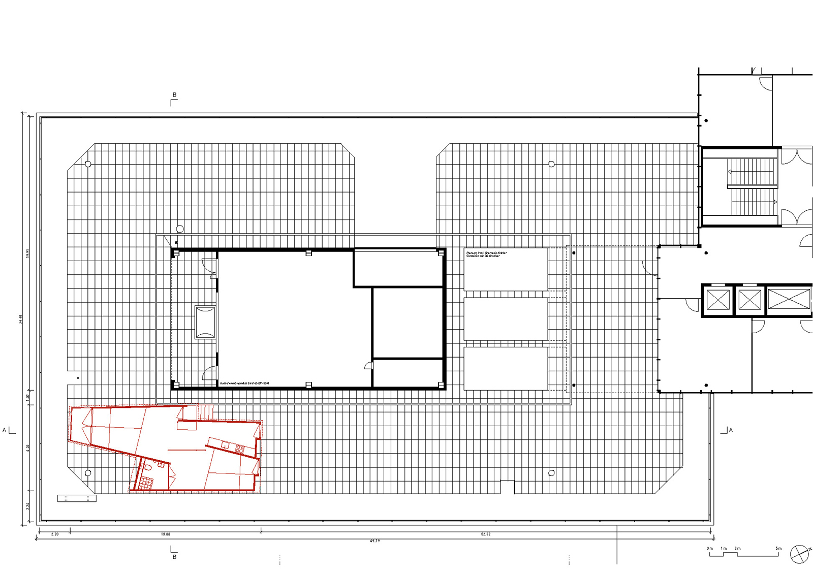 Pentru aceasta a fost construit un prototip de apartament pe terasa de pe acoperișul facultății. El măsoară 54 mp și este dotat cu o lampă, un perete și un dulap mobil, precum și un podium cu sertare și capace rabatabile sub care se pot depune obiecte. Dulapul este acoperit pe o latură cu o oglindă.