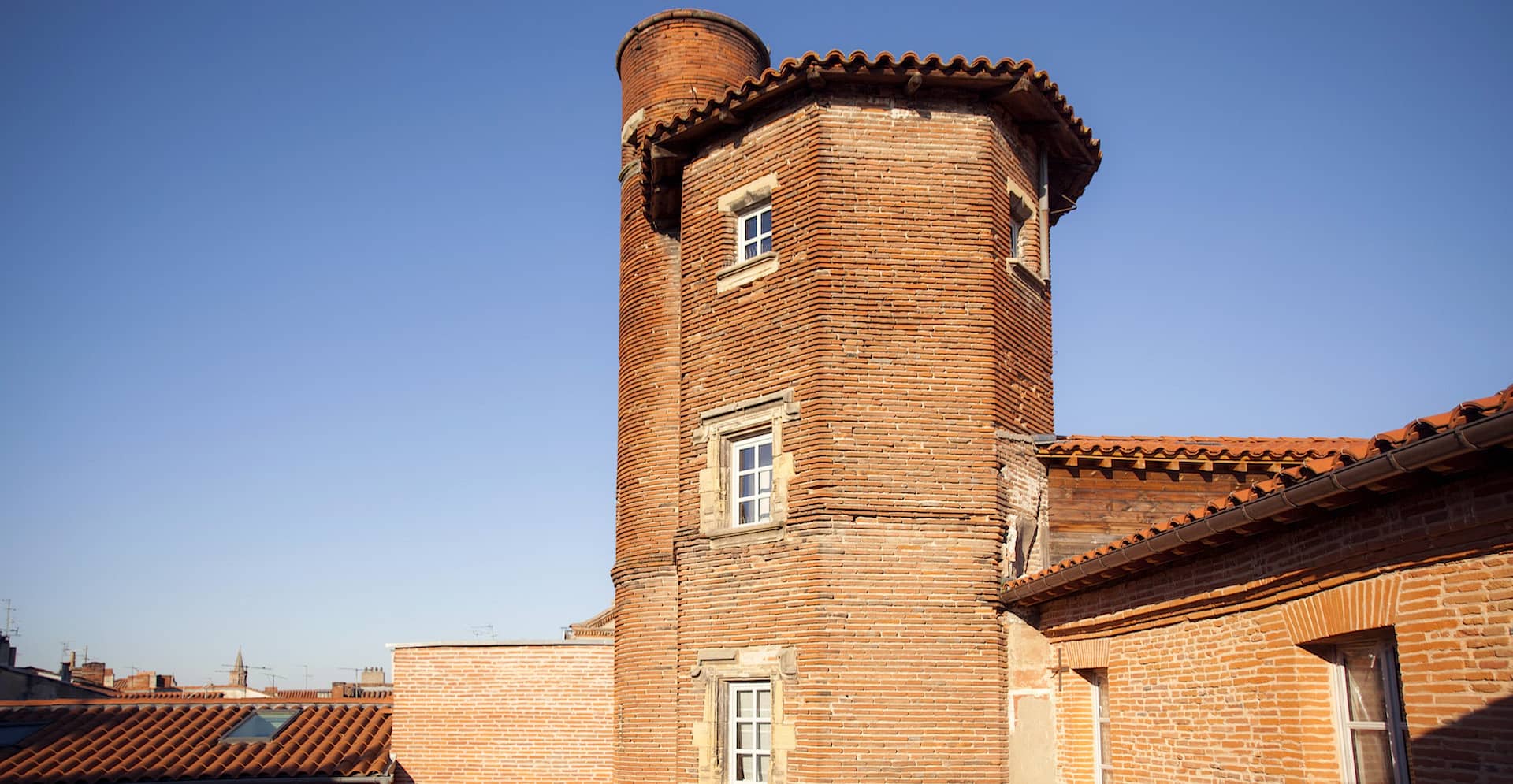 Peisajul orașului Toulouse – și mai ales centrul istoric – e presărat de siluetele a zeci de turnuri de cărămidă, ridicate cu precădere între secolele XIII și XVI de către personaje politice și negustori înstăriți ai vremii, în semn de putere și distincție socială. Turnurile nu erau de sine stătătoare, ci deserveau, prin scările spiralate, primele etaje ale caselor sau vilelor; înălțarea lor cu câteva etaje în plus era însă un gest simbolic, lipsit de o funcție practică. Acesta e, așadar, contextul în care s-a construit Turnul Pierre Séguy la 1477, asimilat un secol mai târziu unui hôtel particulier și ale cărui ultime trei etaje au fost de curând transformate de arh. Christophe Benichou într-un inedit spațiu de cazare.