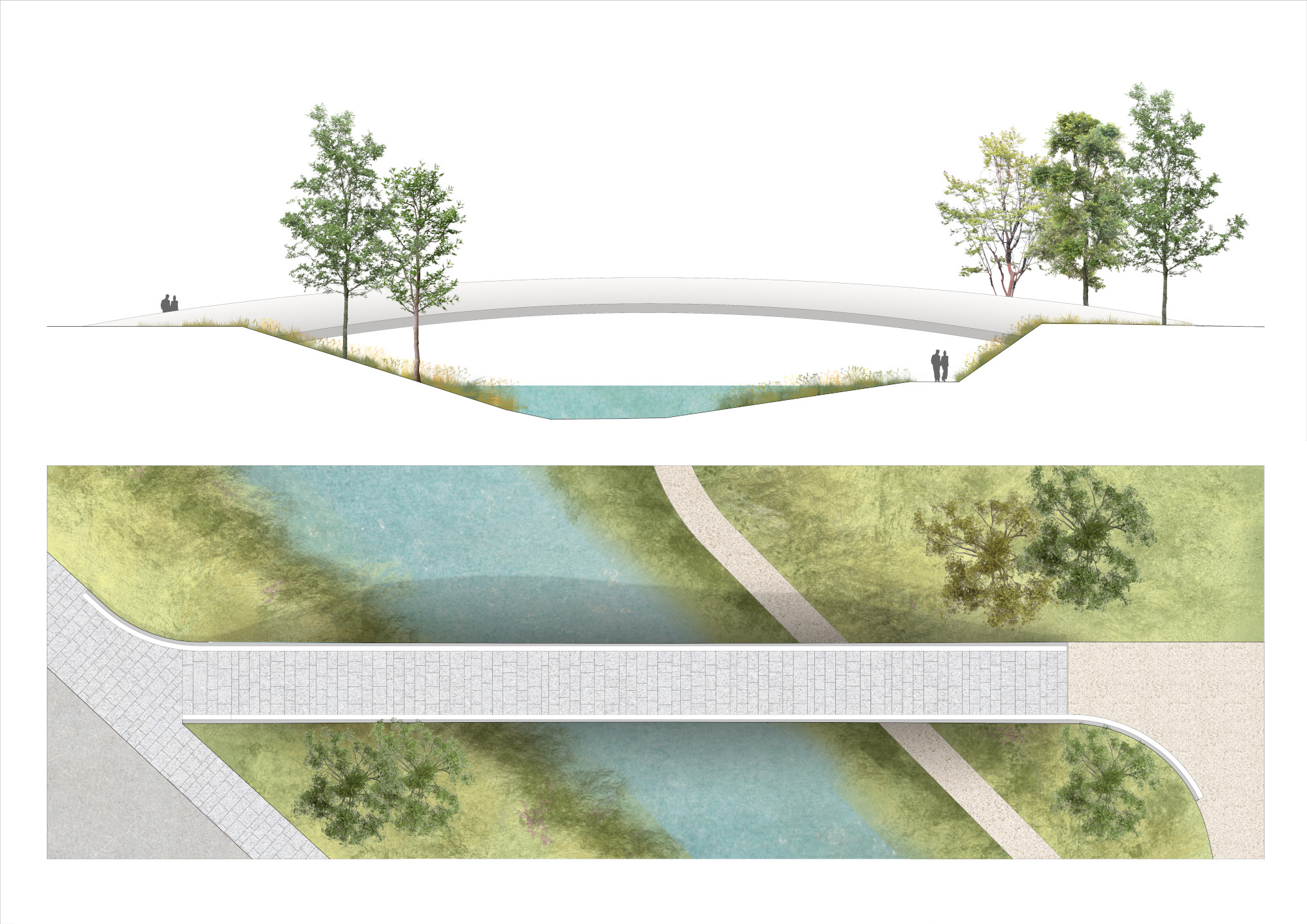 Proiectul a fost finalizat în 2023, însă esența sa stă tocmai în transformarea organică și blândă prin care trece întregul spațiu sub acțiunea anotimpurilor, a prezenței umane și a mediului construit dimprejur. Inițiativa rămâne valoroasă nu doar prin beneficiile imediat vizibile în interiorul comunității locale, ci și prin puterea exemplului, invitând orașele să-și regândească viziunea asupra cursurilor de apă ce le traversează. De asemenea, proiectul s-a distins și prin abordarea colaborativă și multidisciplinară ce a reunit eforturile unui colectiv internațional, format din arhitecți, ingineri, peisagiști și urbaniști.