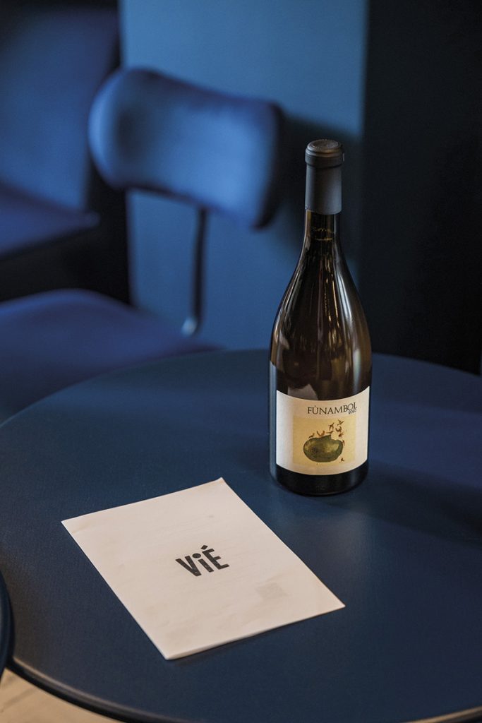 Simbol al locului devine statuia reprezentând o siluetă feminină cu ciorchini de struguri, operă a sculptorului Livio Benedetti, care tronează pe masa lungă a degustărilor de vin. Inspirându-se din filosofia și atmosfera nesofisticată a restaurantelor de fine dining daneze, la Vié se pune accent pe descoperire, de aceea wine pairing-ul cu felurile de mâncare nu este de ocolit, după cum am aflat de la Andreea Barroca, care împreună cu soțul ei deține grupul Tamara: „am imaginat o listă care combină referințe craft accesibile pentru palatul nefamiliarizat – «arhetipuri» de regiuni și struguri iconici precum Pinot Noir și Chardonnay în Bourgogne, Chenin în Loire, Syrah în Côtes du Rhône, Nebbiolo în Lombardia, Lambrusco în Emilia Romagna etc. cu vinuri mai rare, complexe, somptuoase, utilizând intensiv tehnici de skin contact pentru amatorii de vin mai experimentați. De asemenea, nu uităm să completăm oferta noastră cu o varietate de referințe de șampanie, un produs îndrăgit și consumat pe larg de practic orice audiență.”