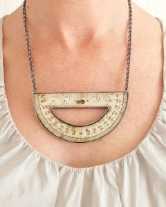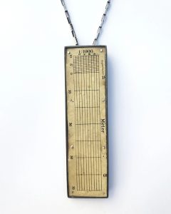Naomi Rachel Muirhead transformă obiecte găsite și materiale cu istorie în bijuterii contemporane. Colecția „Instruments of Measurement” reinterpretează rigle și rulete vechi, transformând precizia în poezie vizuală.