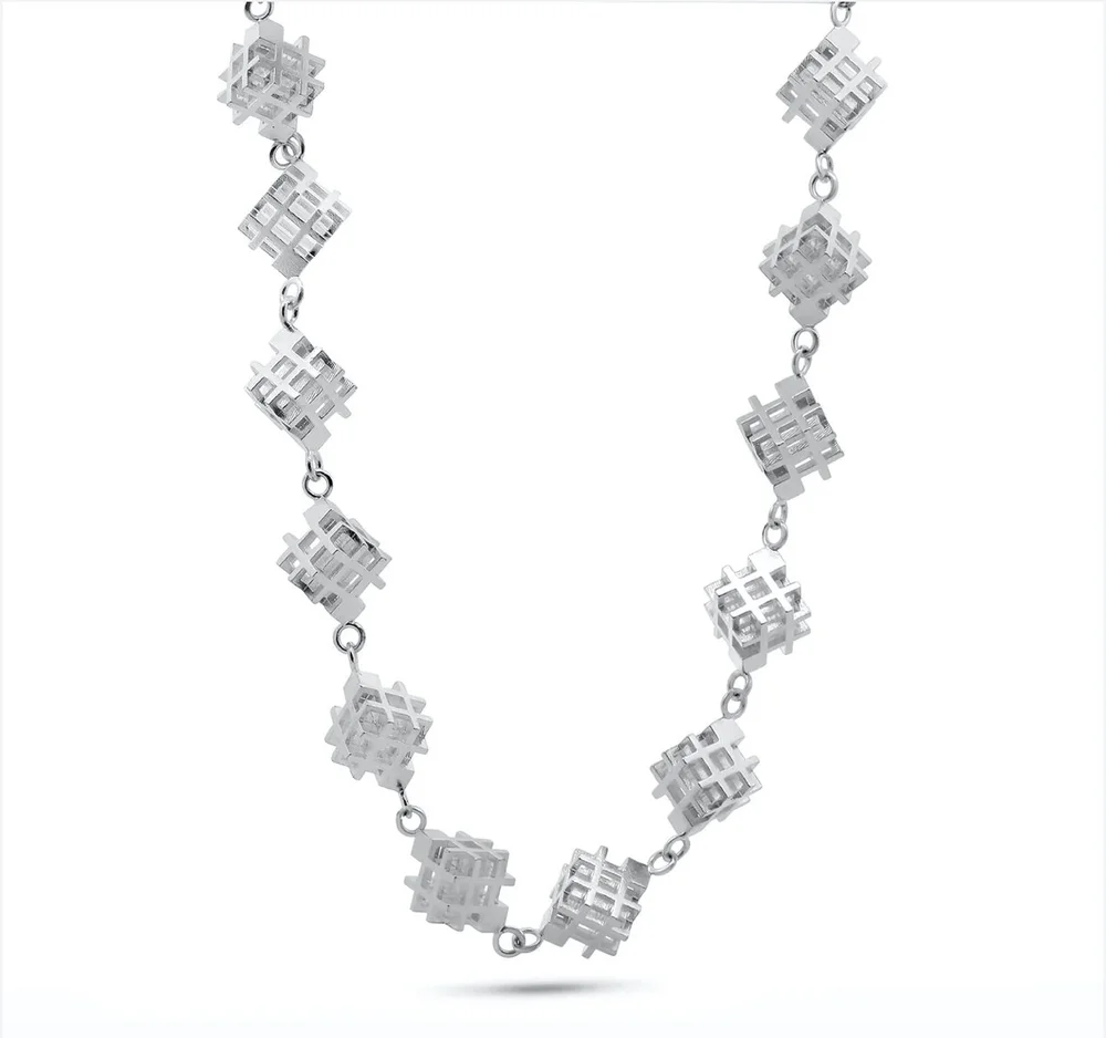 Venessa Ree creează bijuterii ca artă purtabilă, folosind doar metale reciclate. Colecția „3D#” transformă simbolul hashtag într-o formă sculpturală, reflectând lumea digitală în design minimalist.