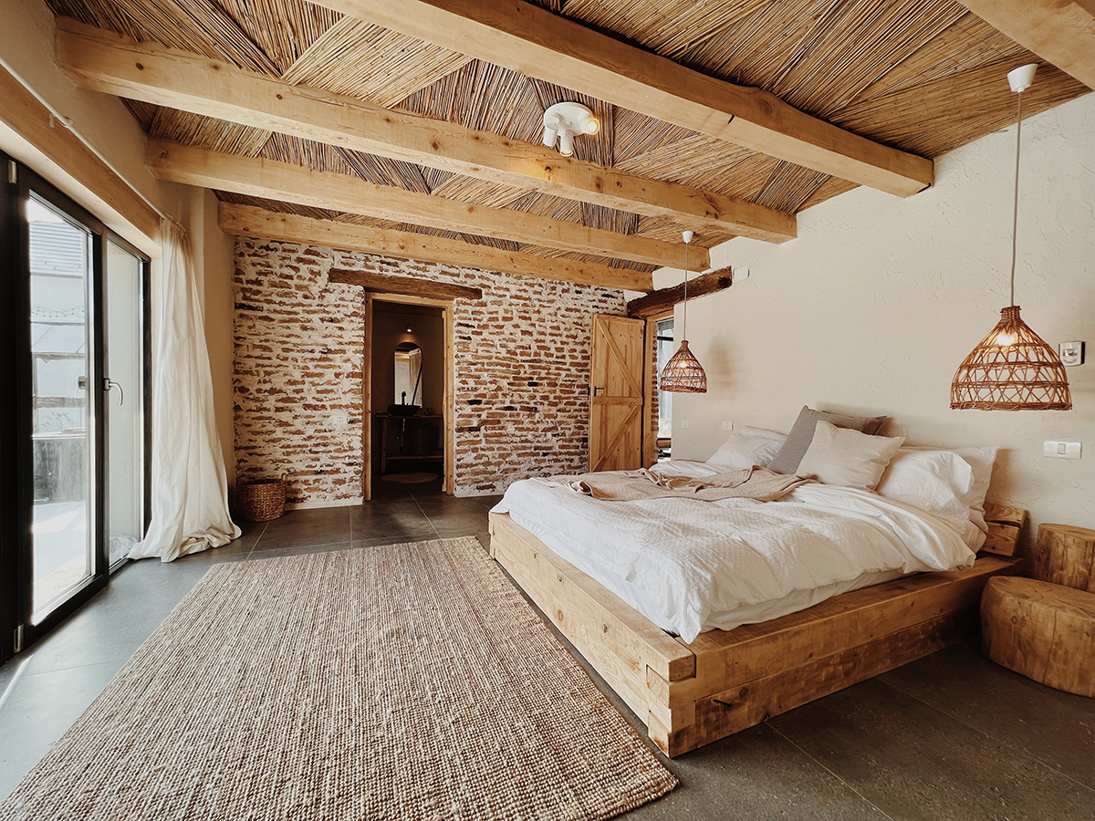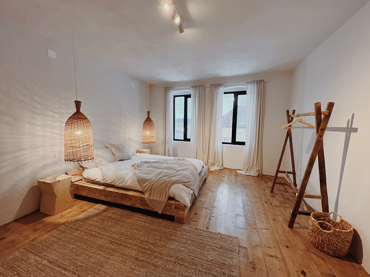 Casa veche din 1948 își așteaptă invitații (maximum 10-12 persoane) în cele patru dormitoare, cât despre șură, aceasta a devenit un spațiu unic de locuit (dormitor cu pat matrimonial, baie privată, living room, baie de serviciu și bucătărie complet utilată.) Casei și șurei li s-a permis să își etaleze amintirile grație recondiționării bârnelor vechi din stejar, pereților din cărămidă lucrată manual ori boltelor din pivnița casei. Lor li s-a alăturat, în rama celor necesare confortului contemporan, spiritul blând al designului de interior de inspirație wabi-sabi orchestrat de Grace Pârvu.