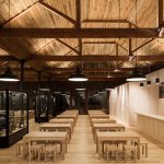 For a wine and tapas selection accompanied by music and atmosphere, the evening can end as well in the center of Porto we left a short while ago. On the Galeria de Paris street, the La Bohème (entre amis) bar is a project signed by Atelier Veloso Architects and a space conceived as a succession of wooden frames of various shapes, projected against a black background.