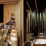Closed and partially destroyed by a storm in 1990, Boa Nova is reborn in 2014, under the supervision of Siza Vieira and thanks to a local initiative to restore and recreate all finishes and details, including the furniture exactly as originally designed and also using the same red African wood, Afizélia, which gives the interior its unmistakable identity. The Tea House becomes Boa Nova restaurant, part of the Chef Rui Paula locations. Sublicensed for 20 years and with the benefit of an almost one million euros investment in kitchen equipment, the new place with a 40 seats restaurant, a bar and a lounge area, emphasizes on avant-garde cuisine based upon seafood dishes: “my aim is that Boa Nova becomes a new gastronomic landmark of North Portugal and honors both culinary tradition of Matosinhos and the location itself – an architecture so naturally born out of the rocks and perfectly integrated into the Atlantic landscape” says the Chef.